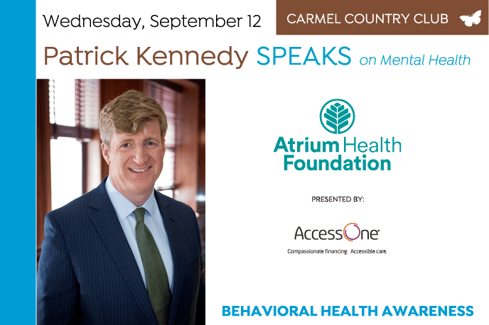 Proceeds from Patrick Kennedy Speaks on Mental Health will help fund vital updates and improvements to Atrium Health’s safety net behavioral health facility located on Billingsley Road in Charlotte. The center offers outpatient programs, 24 hour inpatient services, and houses the only dedicated psychiatric emergency department in the region. In addition, proceeds from the luncheon will be used to underwrite suicide prevention programs and efforts to educate the community about mental illness and substance use disorders.