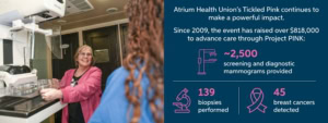 Administered by Atrium Health Levine Cancer and Charlotte Radiology, the program helps underinsured and uninsured women receive free breast cancer screenings along with follow-up care, transportation assistance, breast health education, and other resources designed to remove barriers that too often delay diagnosis and treatment. For many participants, Project PINK provides more than a mammogram — it opens the door to care that may otherwise feel out of reach.