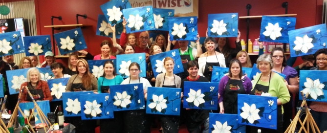The Teal Magnolias recently enjoyed a day of "Painting with a Twist" while fundraising for the Carolinas Ovarian Cancer Fund at Levine Cancer Institute.