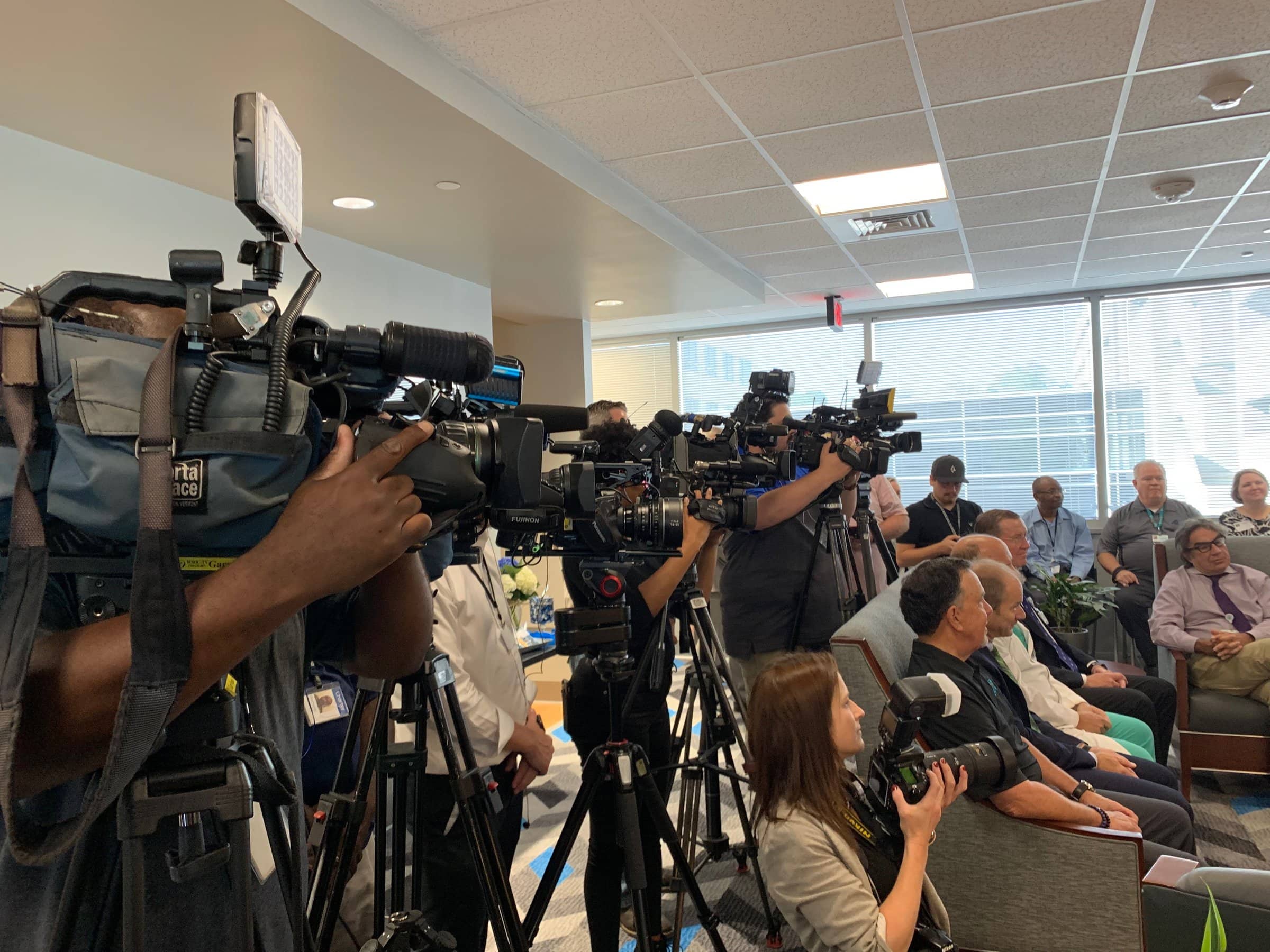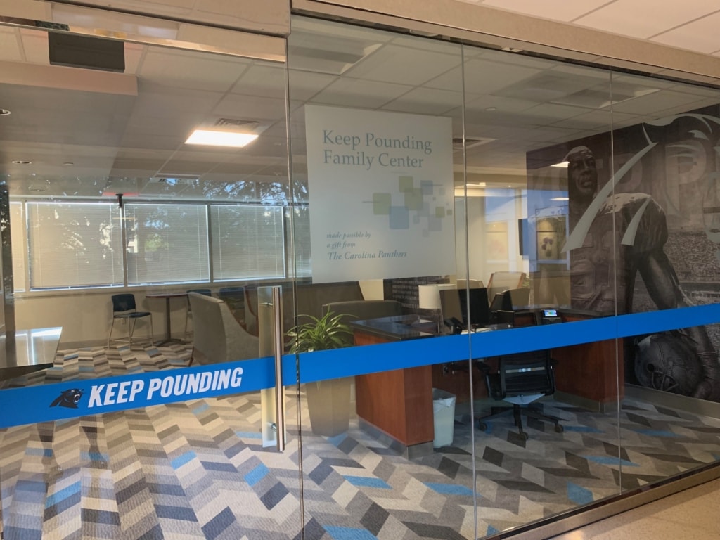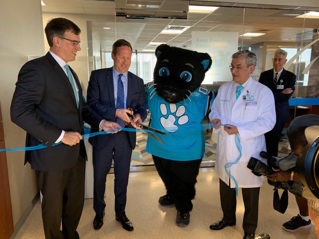 CHARLOTTE, N.C., September 27, 2019 – Atrium Health’s Levine Cancer Institute celebrates the grand opening of a new family center at Levine Cancer Institute. The Carolina Panthers, long-time supporters of Atrium Health, have committed $1 million to support cancer research at the Institute through the Keep Pounding Fund. In recognition of their generous gift, the Keep Pounding Family Center in the newly expanded Institute is being named in honor of the team’s signature mantra, Keep Pounding.